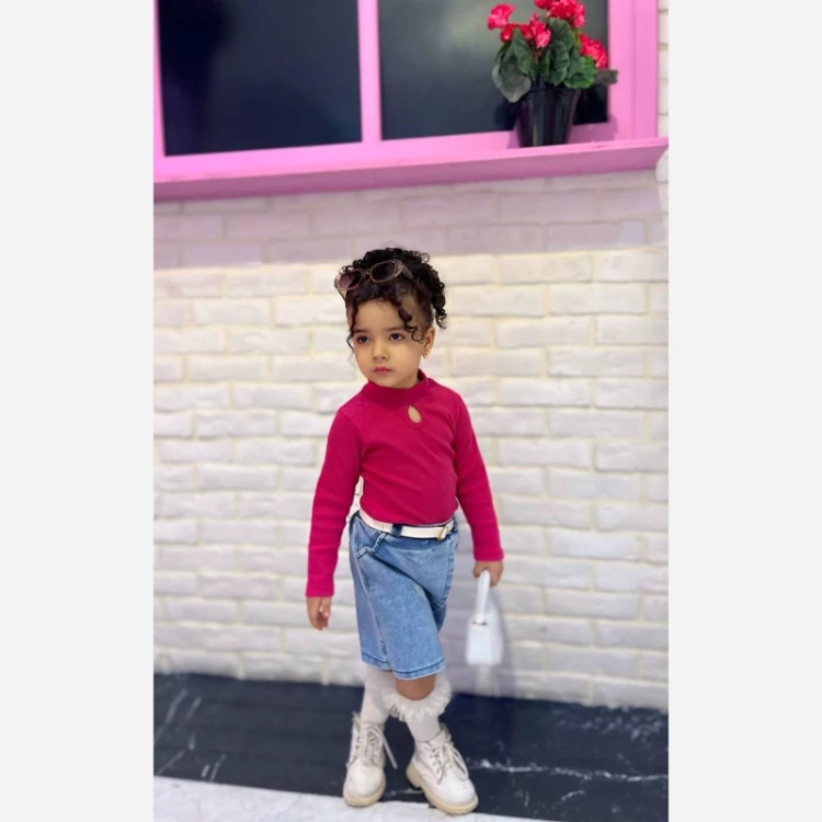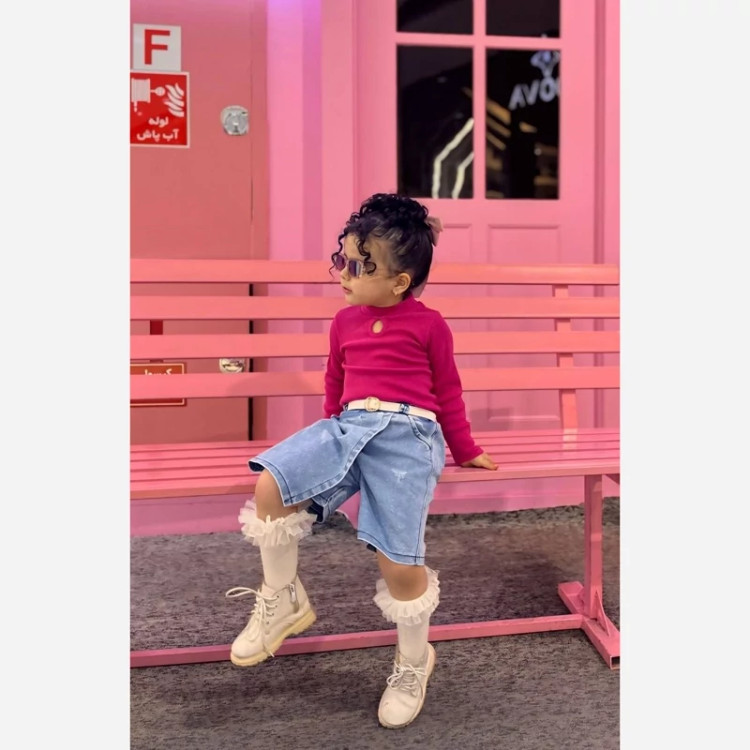 ست دخترانه بلوزدامن جین مناسب۵تا۸سال سرخابی