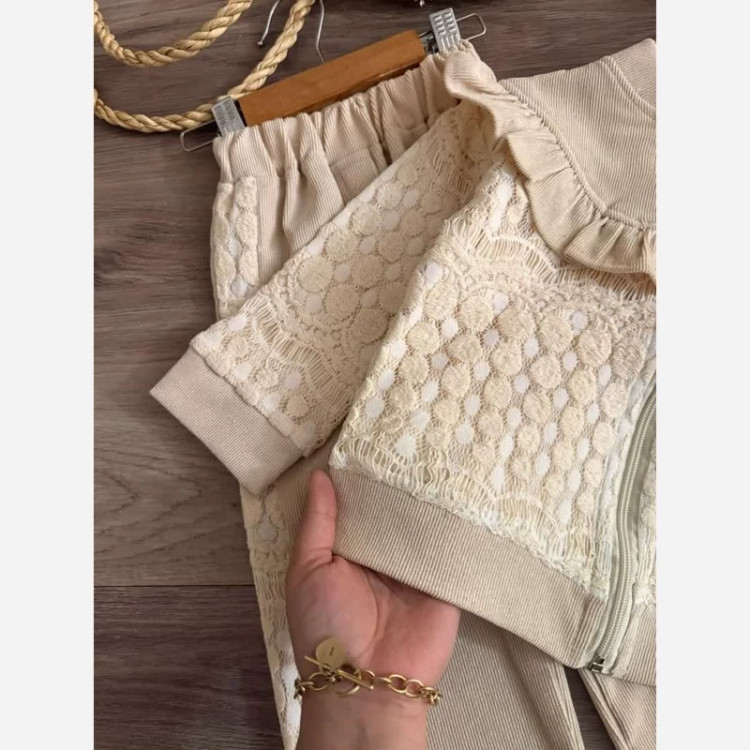 سویشرت شلوار دخترانه تینیجری مخمل کبریتی و دانتل