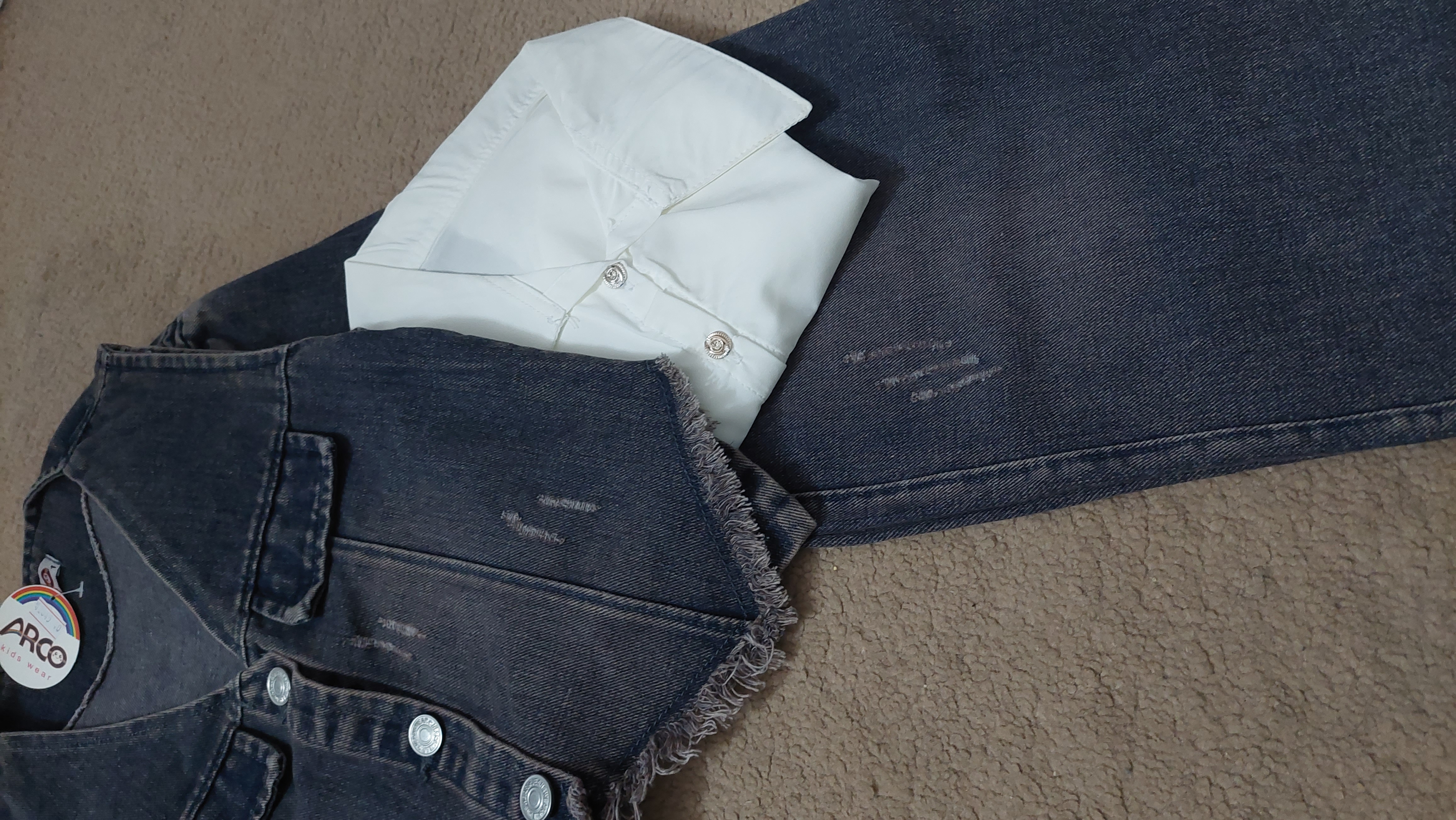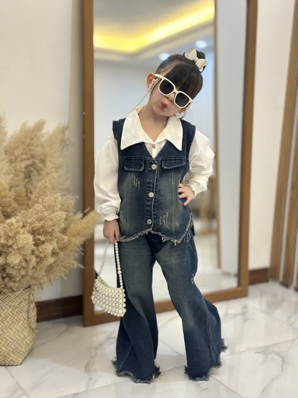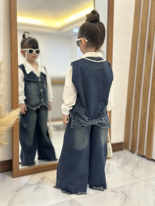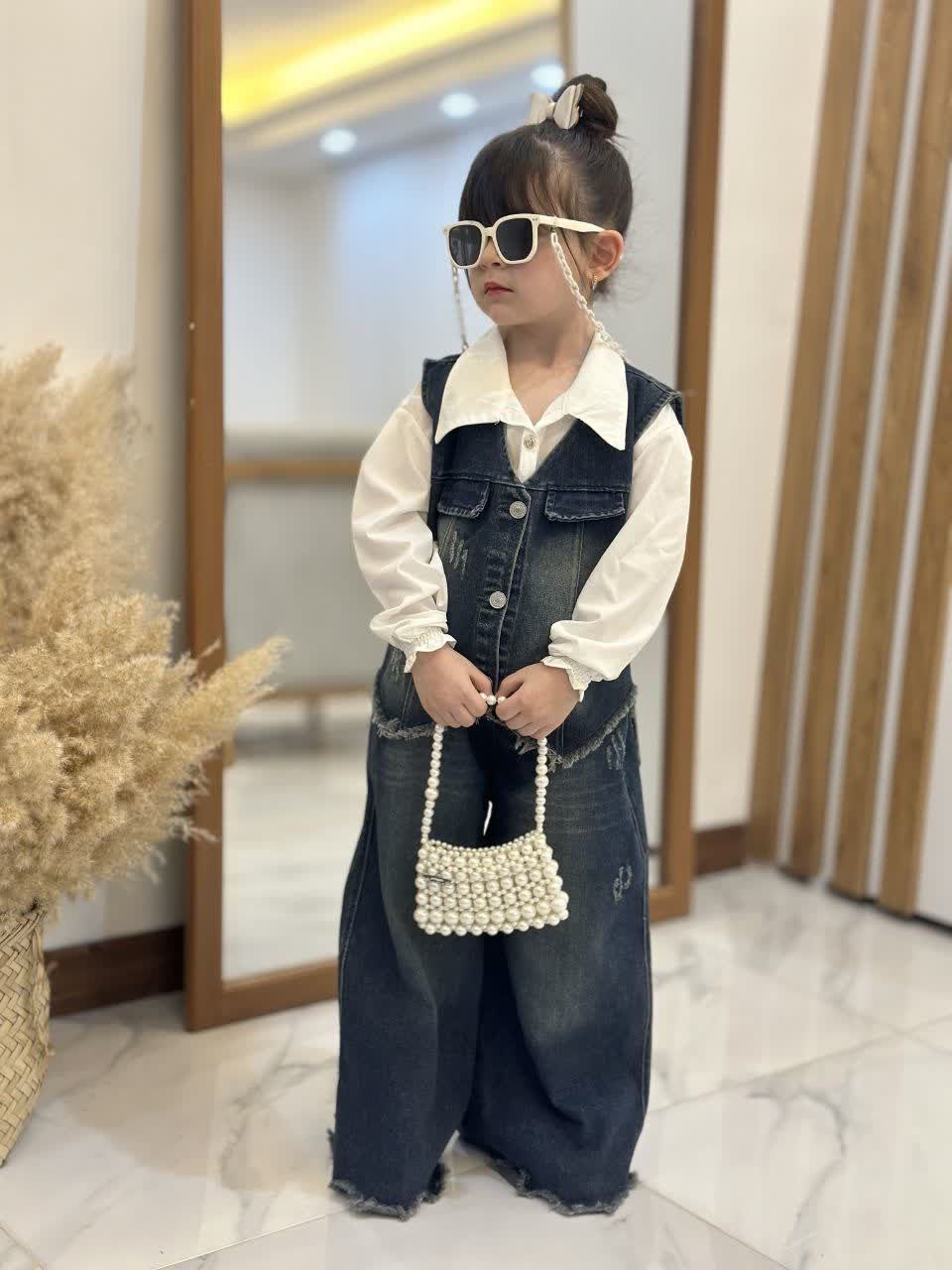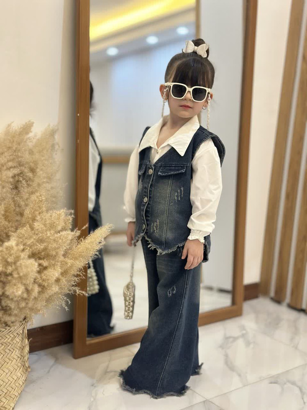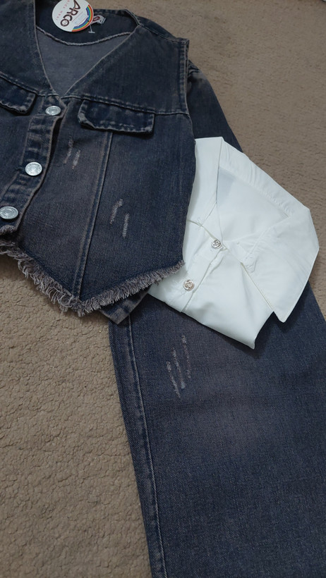 ست جین دخترانه شلوار و وست جین وشومیزعیدانه